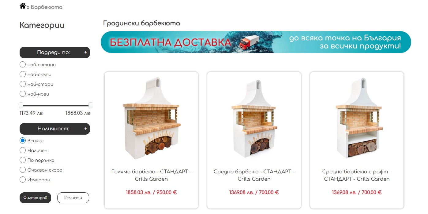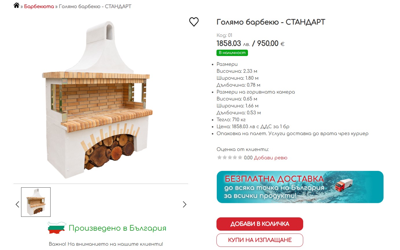 Стоян Неделчев – ЕООД е българска фирма която работи от 2004г. в град Русе. Нашата дейност е свързана с изработката на висококачествени градински изделия изградени от огнеупорни материали, мраморен прах от остров Тасос, здрави лепила и конструкции. Продуктите, които предлагаме в нашия онлайн каталог за барбекюта и пещи са – големи, малки и мини барбекюта, пещи в два размера, градински и стенни чешми, параклиси.