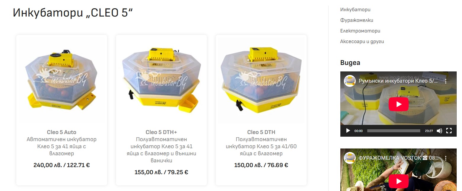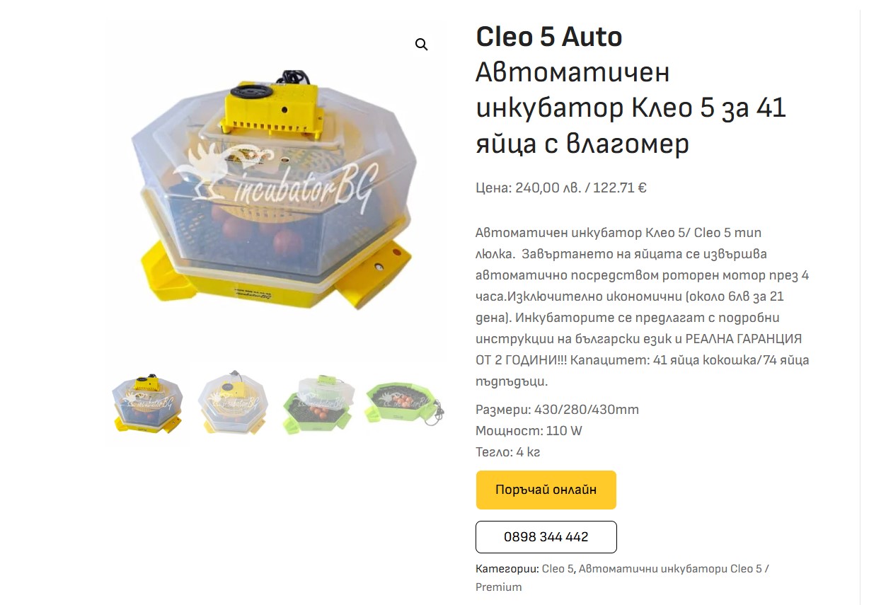 Предлаганите от IncubatorBG инкубатори са изключително компактни и лесни за употреба, инкубаторите са с капацитет 41, 51,60, 82 яйца предназначени за люпене на: кокошки, патици, гъски, яребици, фазани, пъдпъдъци, пуйки.